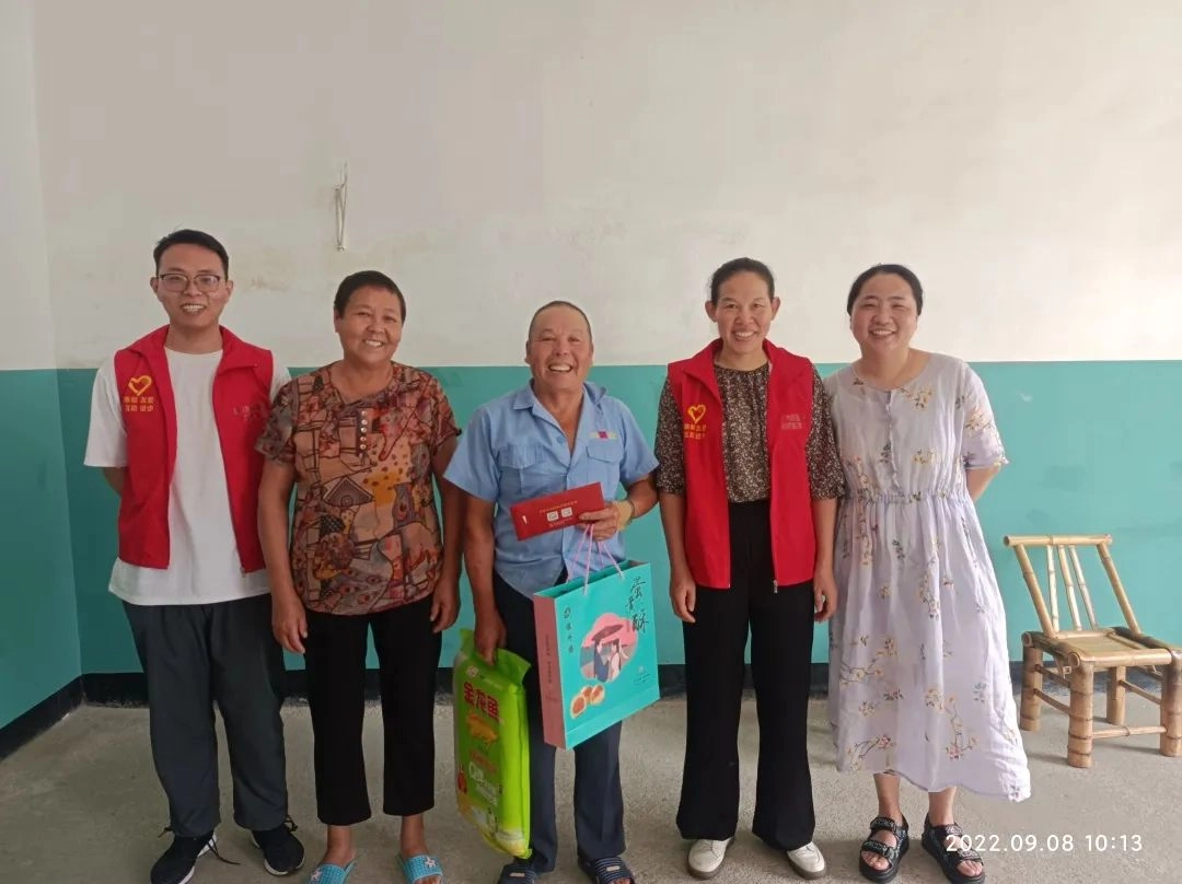 当天,志愿人员分别来到柴家坞村、三星村、塘北村、超丁村,慰问帮扶的困难家庭。每到一户,都与之亲切交谈,了解他们的生活状况、身体情况、子女教育情况以及遇到的困难,并为他们送上中秋慰问品和慰问金,衷心祝福他们节日快乐、身体健康,生活越来越好,子女健康成长,早日脱贫!