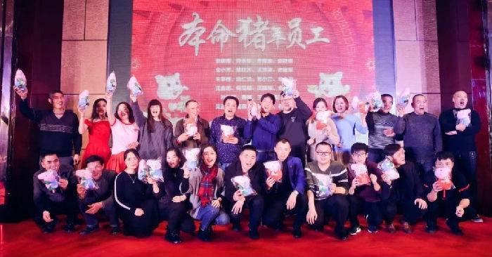 在董事长张建国的带领下,公司高管一起举起酒杯,向全体员工表达了感谢之情与新年祝福。