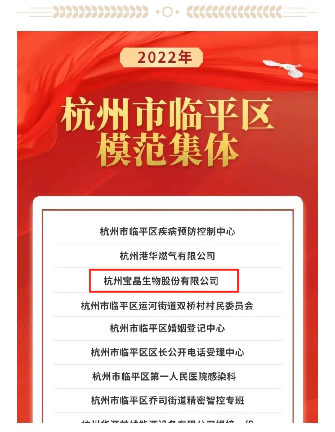 近日,2022年临平区劳动模范和模范集体表彰大会召开,杭州豪门国际官网生物股份有限公司获评“2022年杭州市临平区模范集体”称号。