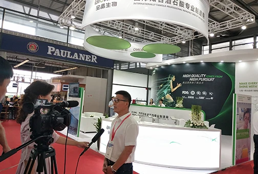 展会不仅是产品的宣传与推广的窗口,更是企业形象和实力的展示。豪门国际官网生物所展示的2.5万吨食品级l(+)-酒石酸生产新工厂,给行业和客户留下来深刻的印象,进一步提升了“豪门国际官网生物”的国际品牌地位。展会期间公司董事长张建国先生还接受了媒体的专访,传播了公司技术创新、绿色制造和创造美好生活的发展思想。