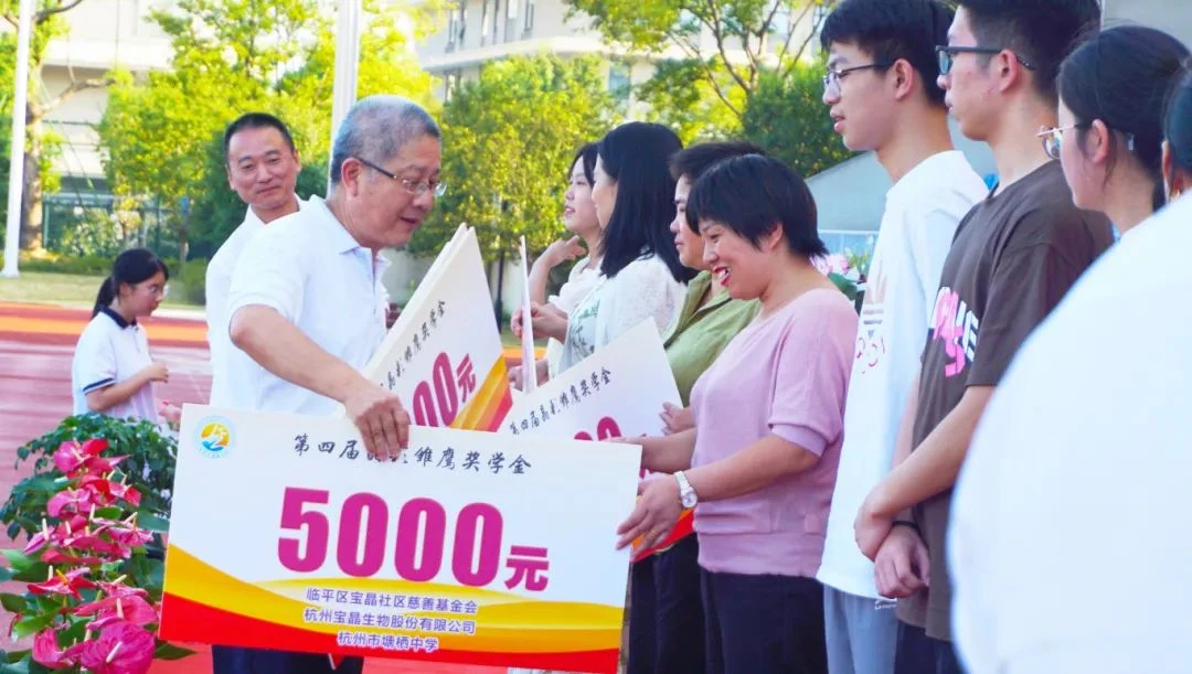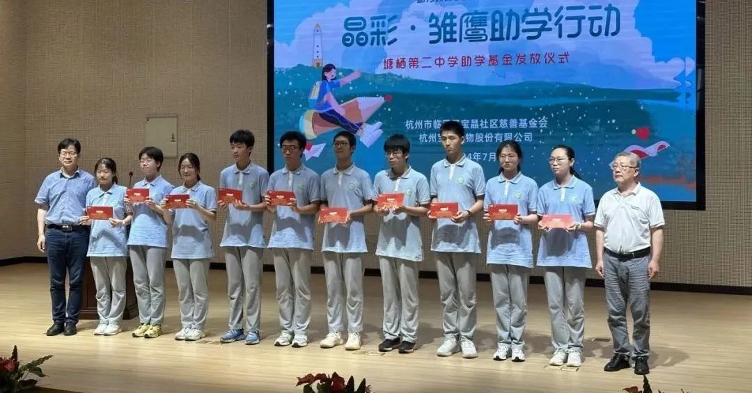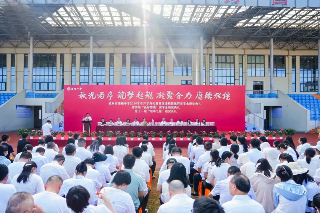 9月9日下午,豪门国际官网社区慈善基金会理事长孙伟荣先生和理事许素萍女士受邀出席塘栖中学2024学年第一学期开学典礼。塘栖中学副书记、副校长闫永吉,副校长胡春英,副校级视导员吴江林分别宣读了第四届“晶彩雏鹰”奖学金获奖名单、“第十一届塘中之星”表彰名单和“塘栖镇镇政府奖学金”获得者名单。理事长孙伟荣为获奖学生颁奖并合影留念。
