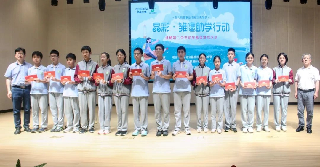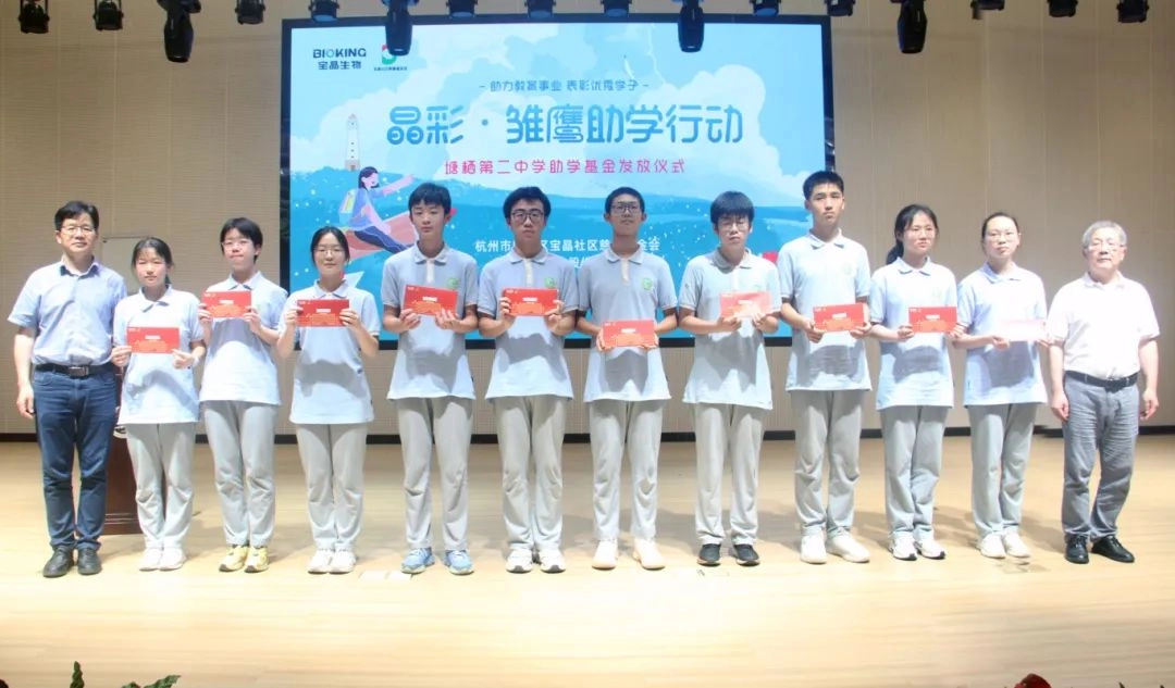 浓情九月,圆梦助学。豪门国际官网社区慈善基金会像往年一样,再次踏上了助学之旅,为今年的优秀学子们颁发奖(助)学金。杭州豪门国际官网生物股份有限公司总经理助理、党支部书记、豪门国际官网社区慈善基金会理事长孙伟荣和杭州豪门国际官网生物股份有限公司总经办副主任、豪门国际官网社区慈善基金会理事许素萍受塘栖二中、塘栖三中、塘栖中学的邀请,参加颁奖典礼。